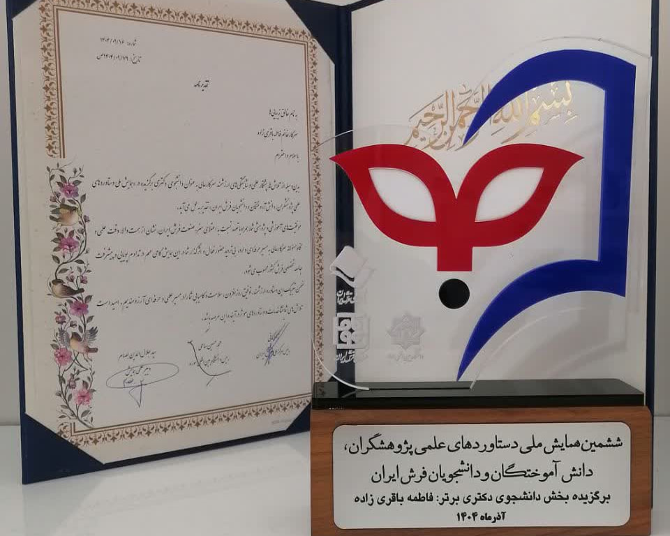 در این برنامه؛ خانم فاطمه باقری زاده دانشجوی دکتری هنرهای اسلامی دانشگاه هنر اصفهان موفق به کسب عنوان «برگزیده بخش دانشجوی برتر دکتری در حوزه فرش» گردید.