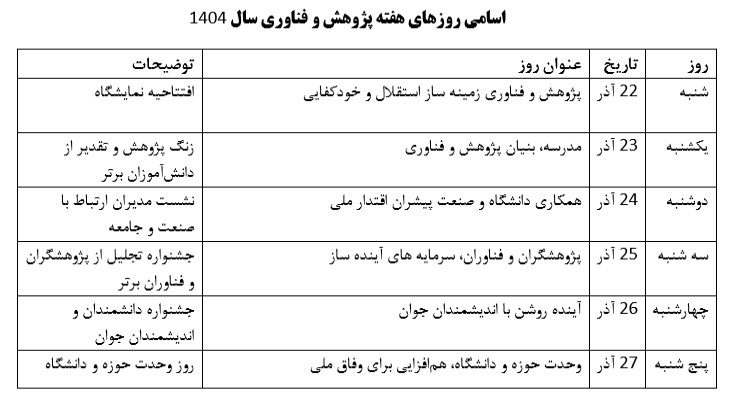 شعار هفته پژوهش و فناوری سال 1404:" سرمایه گذاری در تولید با پشتوانه پژوهش و فناوری "