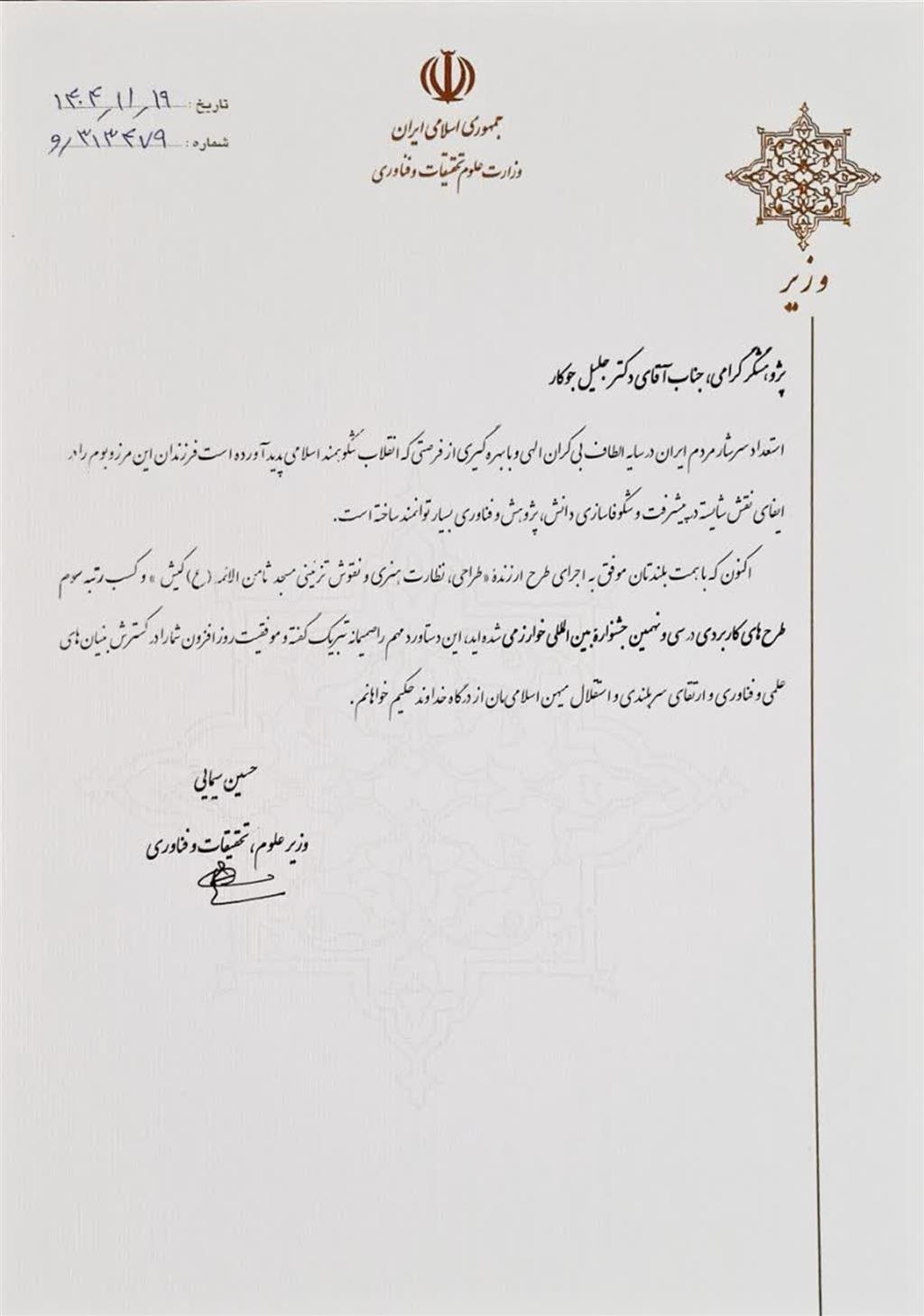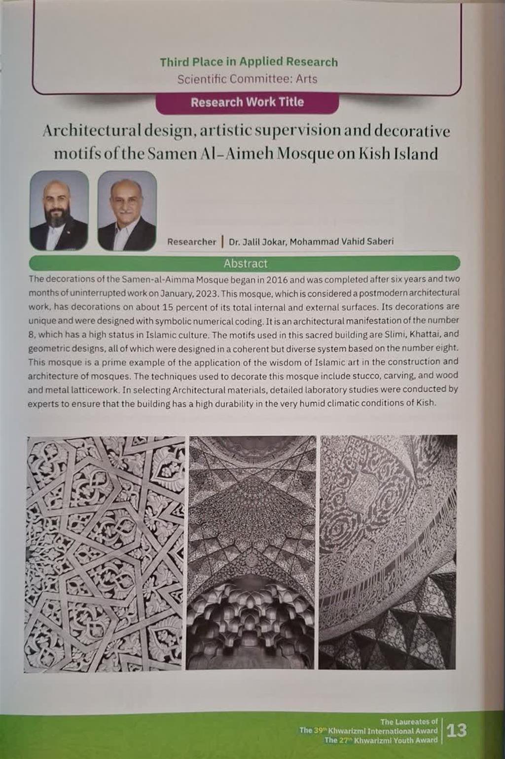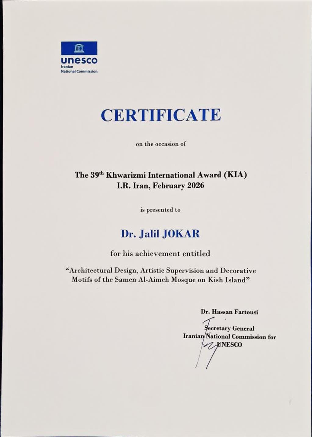 عضو هیئت علمی دانشگاه هنر اصفهان برگزیده سی و نهمین رویداد بین المللی خوارزمی و یونسکو